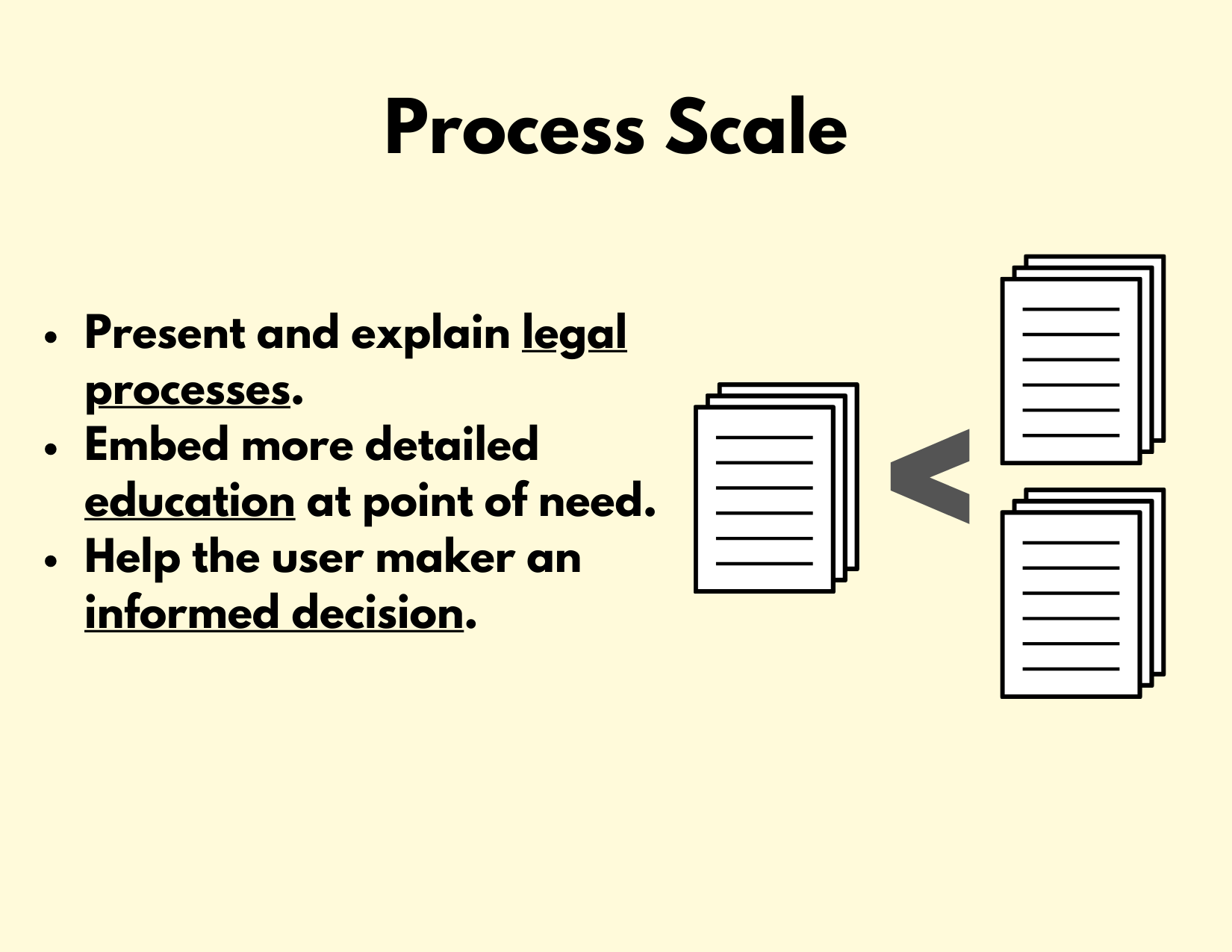 In the end, the Micro Scale involves analyzing, refining and presenting targeted pieces of information to users. Our goal in the access-to-justice space is to present this information in the simplest way possible, while still meeting all legal requirements.